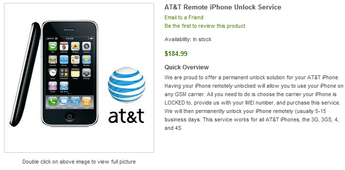 หลังจากผ่านไปเกือบ 1 ปี วันนี้ทาง Cutyoursim ผู้ให้บริการรายใหญ่ครั้งก่อนได้กลับมาให้เปิดให้บริการปลดล๊อคแบบถาวรสำหรับไอโฟนที่ติดล๊อคกับเครือข่าย AT&T อีกครั้งแล้วครับ โดยกลับมาคราวนี้มีอัตราค่าบริการอยู่ที่ 184.99 เหรียญ (ประมาณ 5,500 บาท)